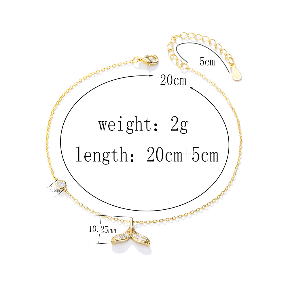 14K 18K Gold Plated Beach Mermaid Tail Chain Cubic Zircon 925 Sterling Silver Charm Anklets