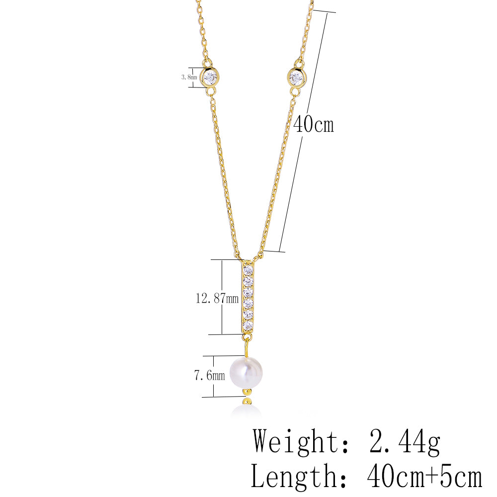 Bezel Setting Round White Zircon Bar Mother Of Pearl Necklace