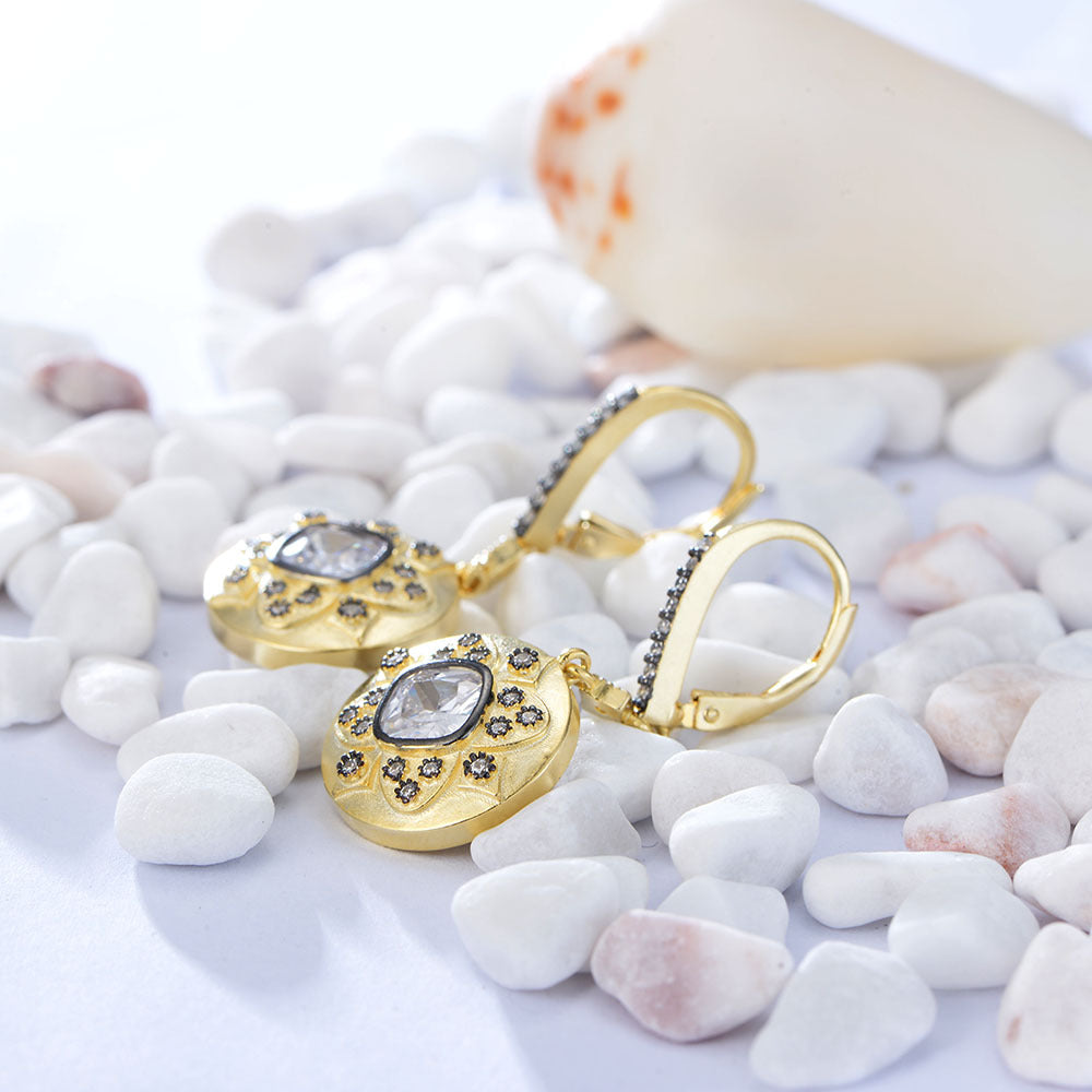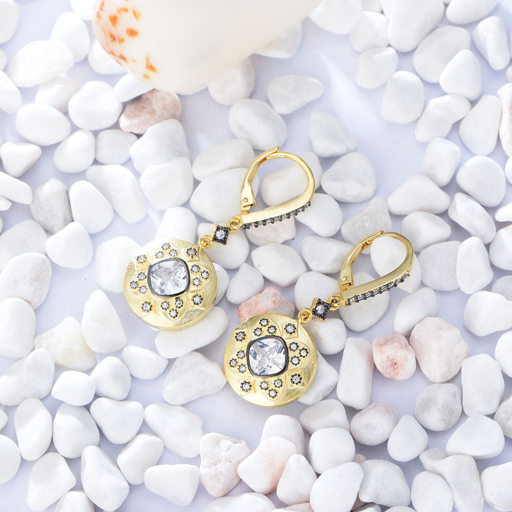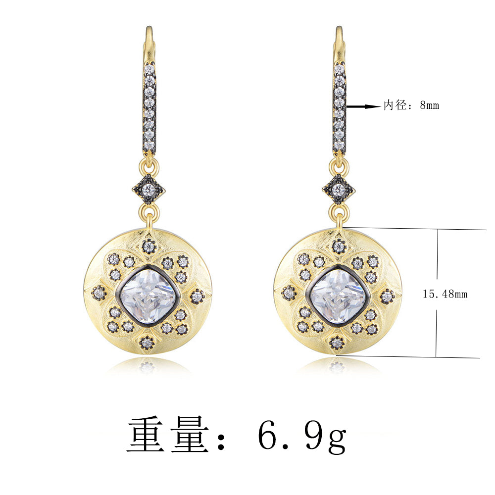 Gold Black Plated Vintage Leopard Round Lever back Drop Religious Earring