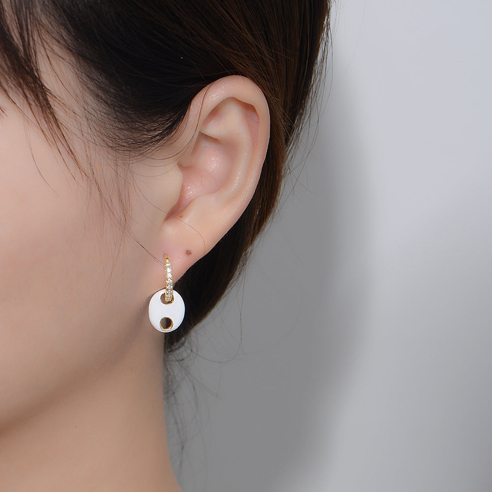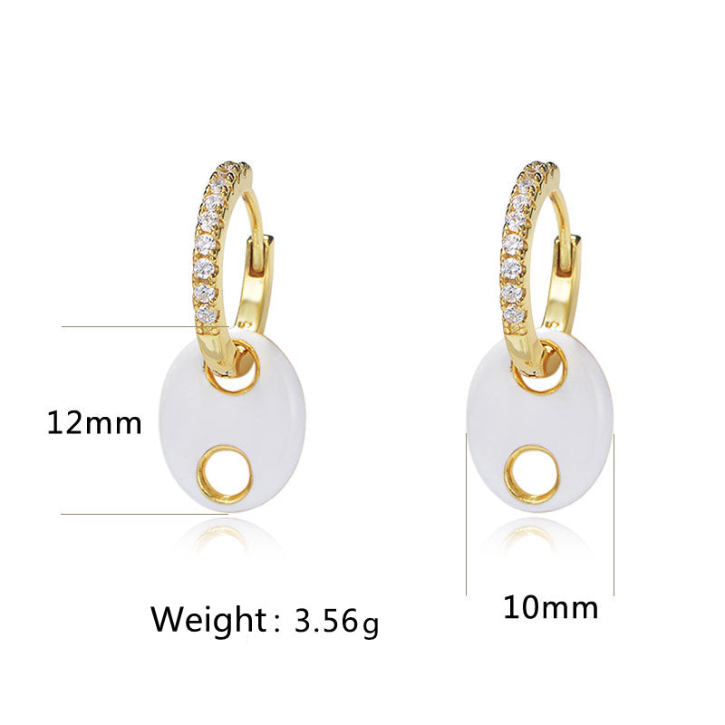 Cubic Zirconia Geometric Enamel Double Hole Pig Nose Hoop Earrings