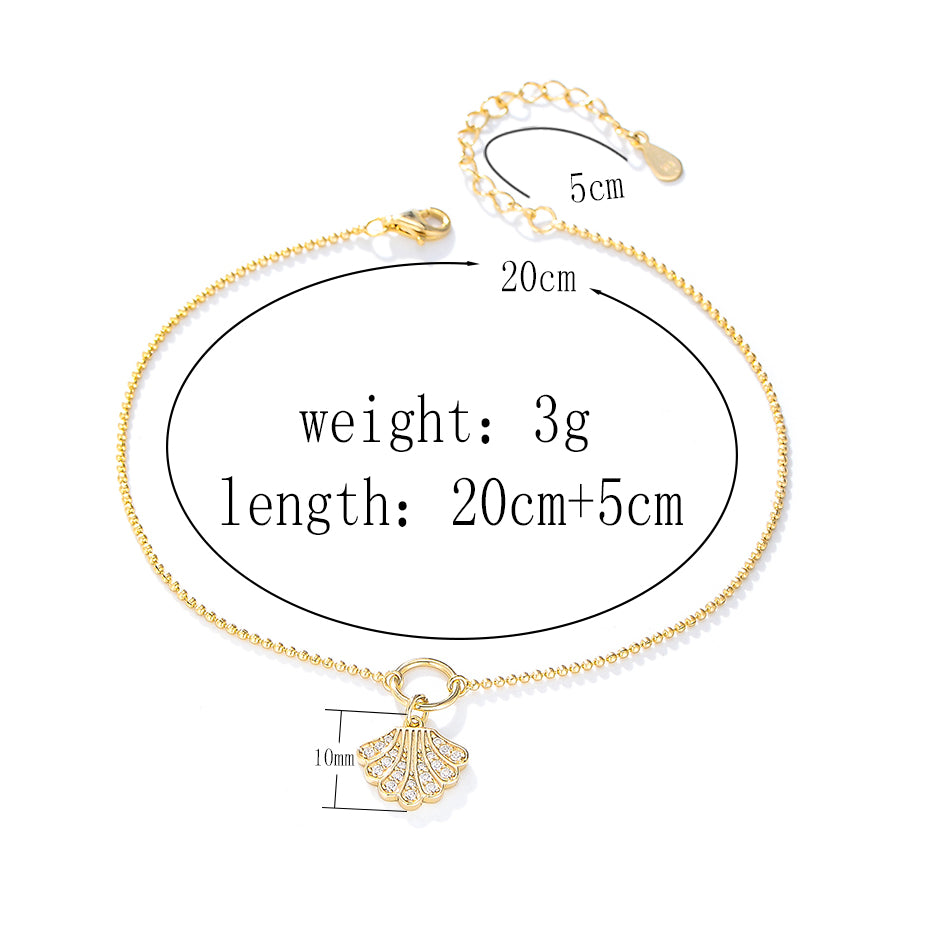925 Sterling Silver Adjustable Chain Cubic Zirconia Cute Shell Charm Anklets