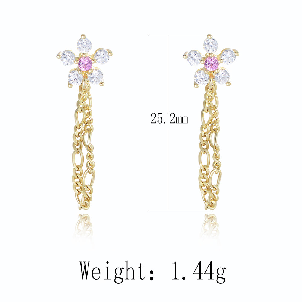 Cubic Zirconia Flower Stud Earrings Figaro Chain Drop Earrings
