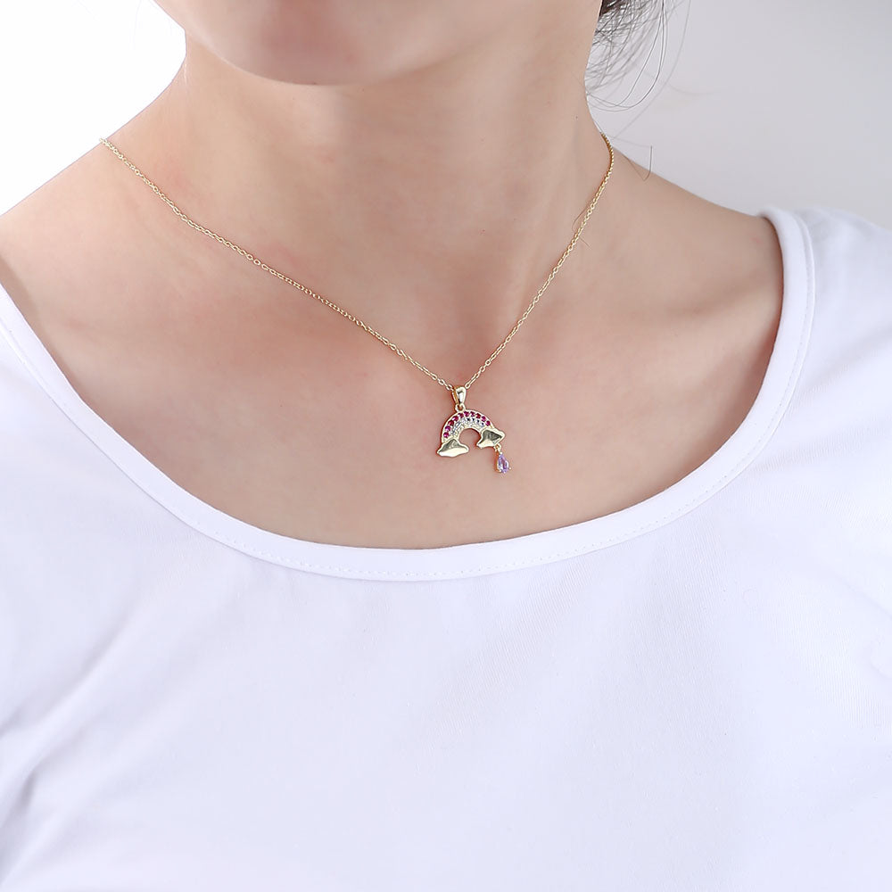 Cute Pear Drop Gemstone Charm Diamond Colorful Zircon Rainbow Necklace