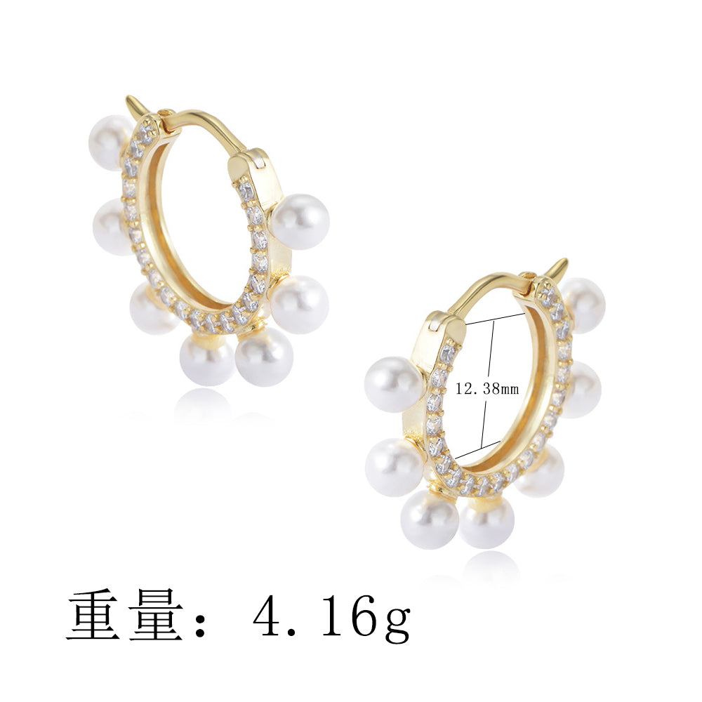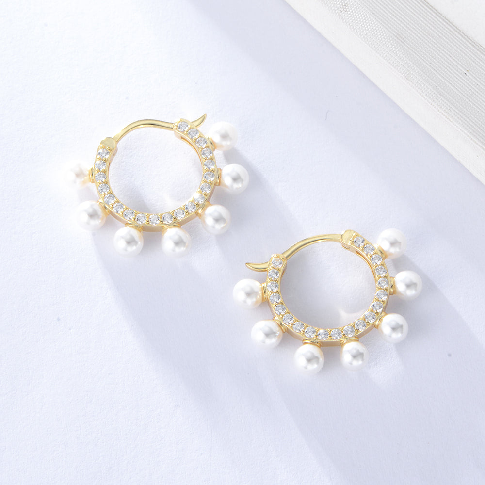 Gold Plated Full Round Pearl Hoop Huggie Earrings