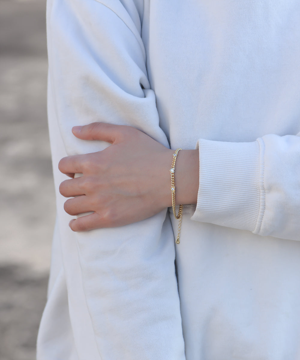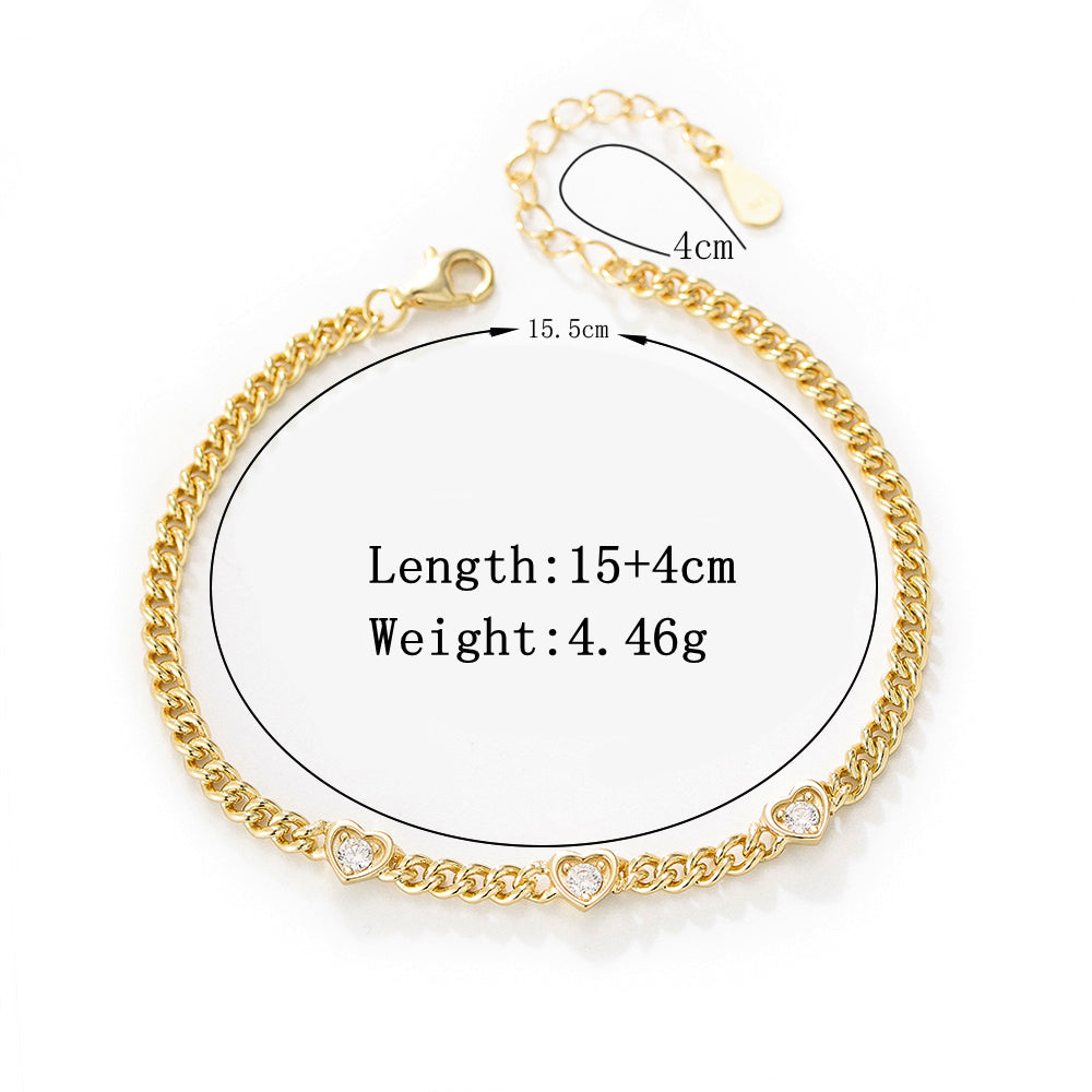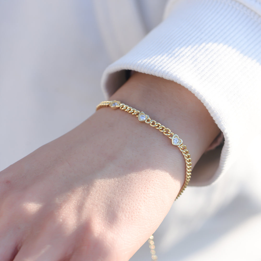 Heart White CZ Multi-Charms Women Curb Chain Jewelry Bracelet
