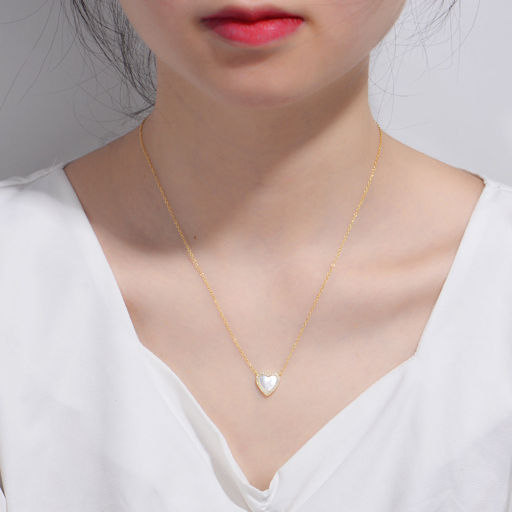 Jewelry CZ Shell Heart Charm Necklace