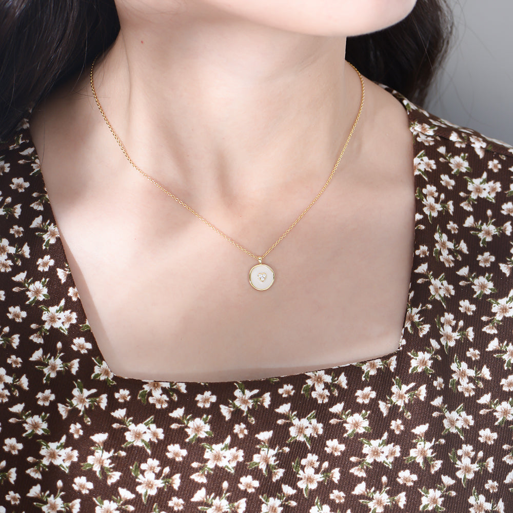 White Enamel Heart-Shaped Cubic Zirconia Round Pendant Necklace