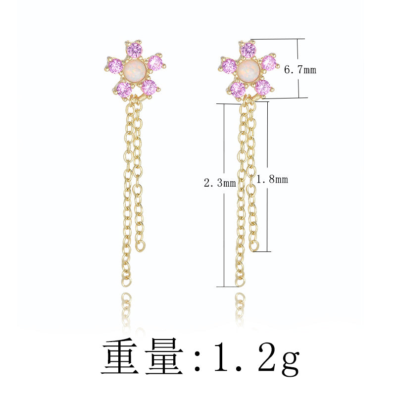 Zircon Flower Tassel Drop Earrings