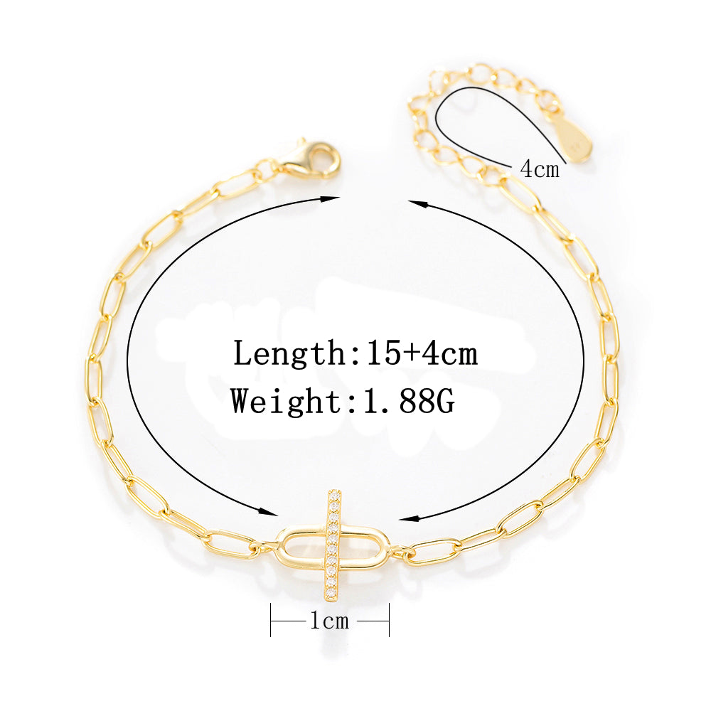 Zircon Gold Plated Curb Chain Cross Paper Clip Bracelet Zircon Gold Plated Curb Chain Cross Paper Clip Bracelet