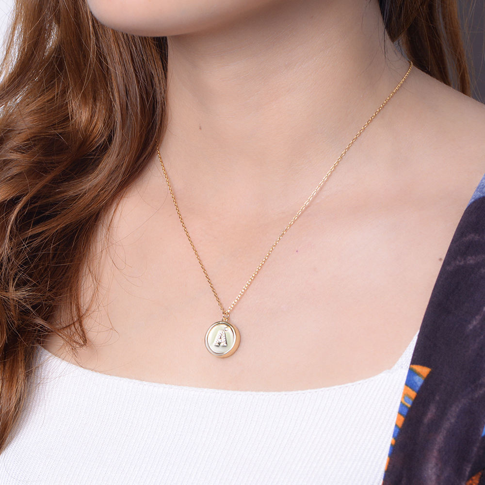 Gold Plated Zircon Two Face Round Pendant a Letter Star Necklace Jewelry