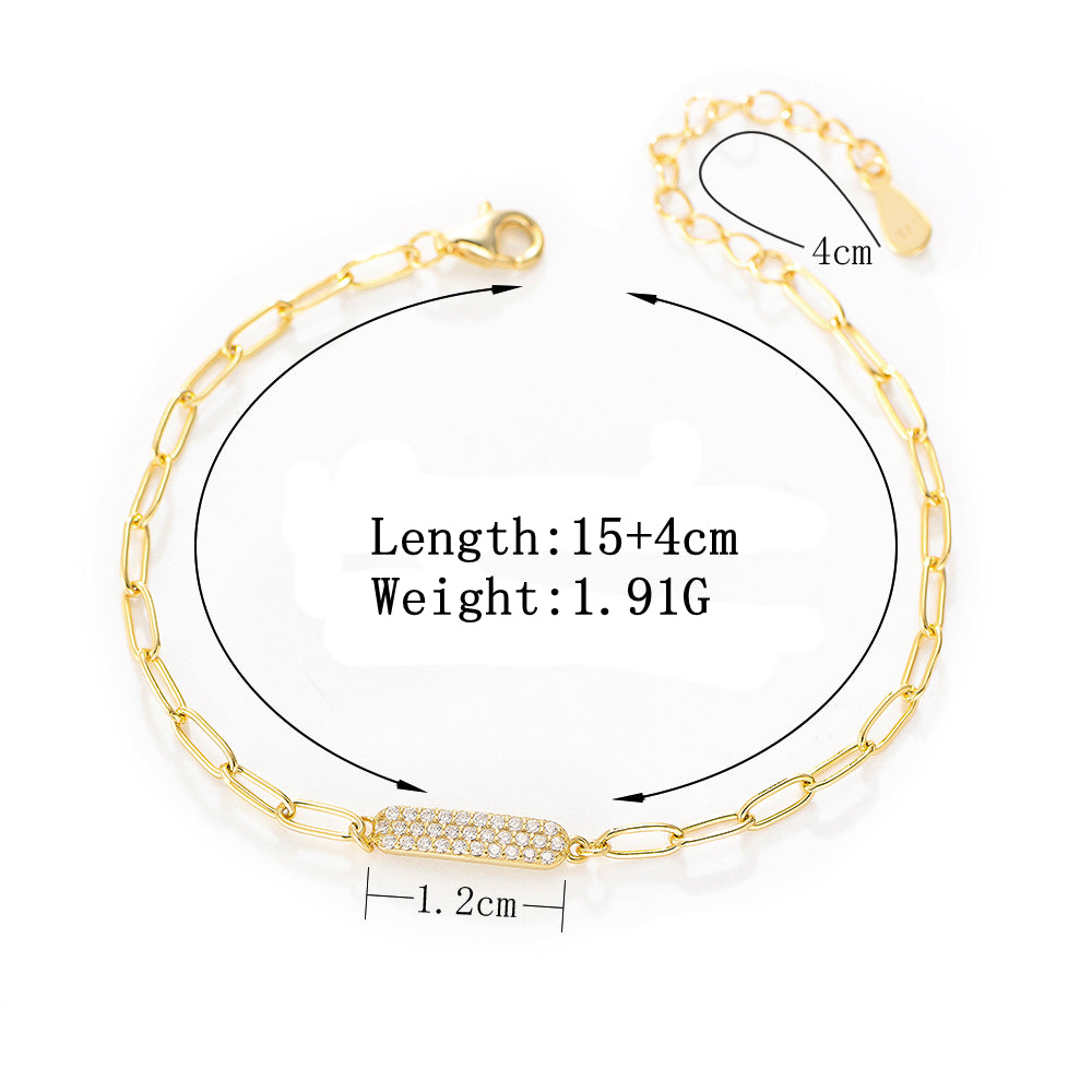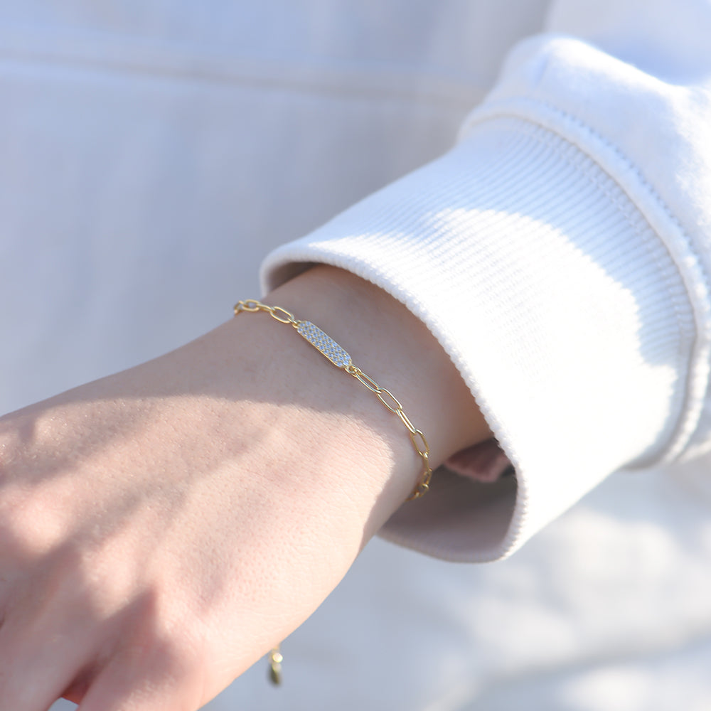 Classic Paper Clip Chain Zirconia Bar Charm Bracelet