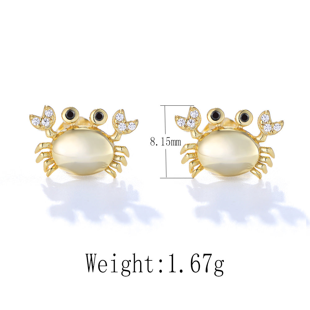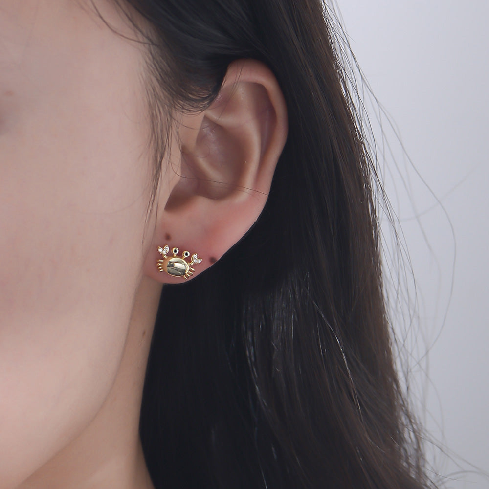 Cute Micro Bezel Zircon Cancer Crab Stud Earring
