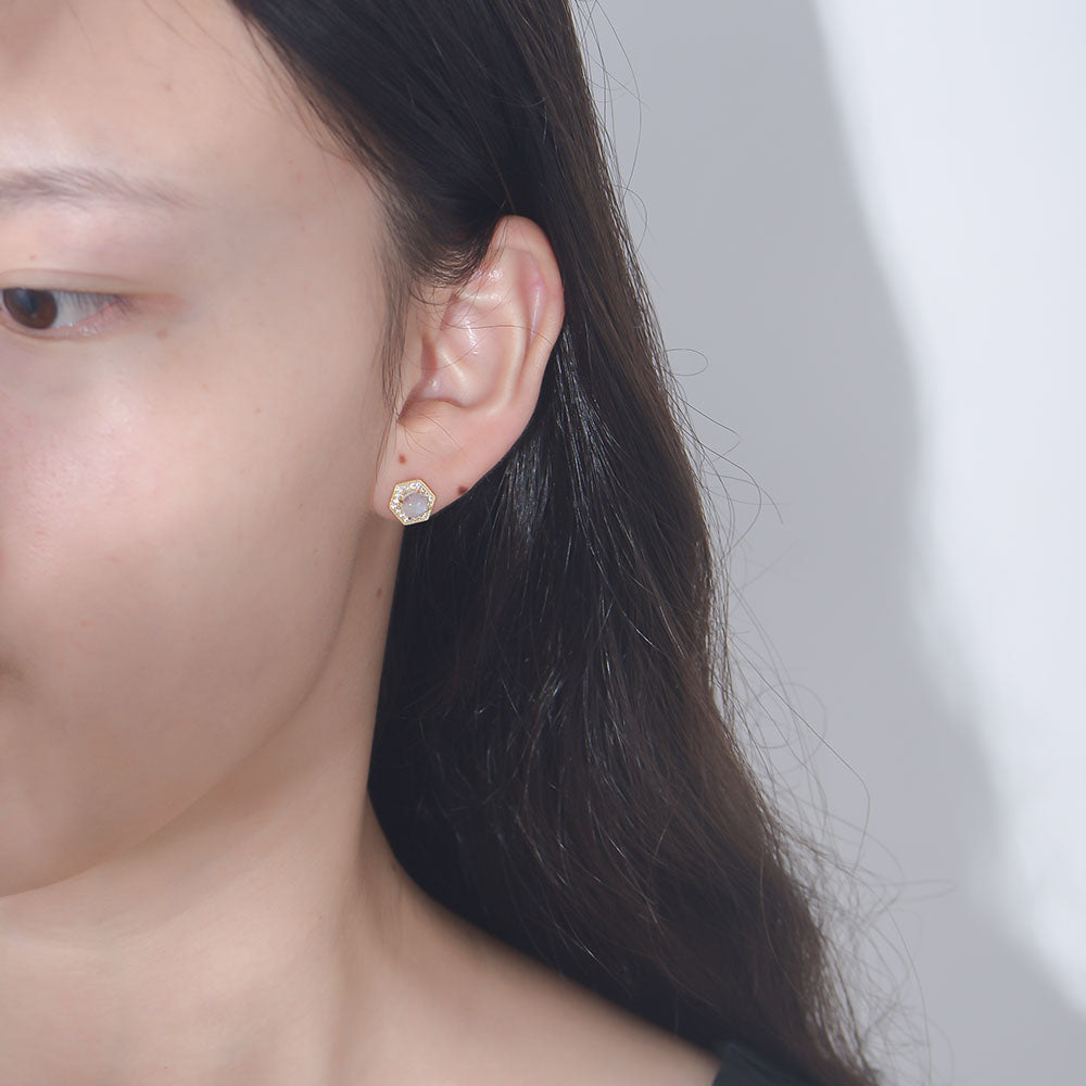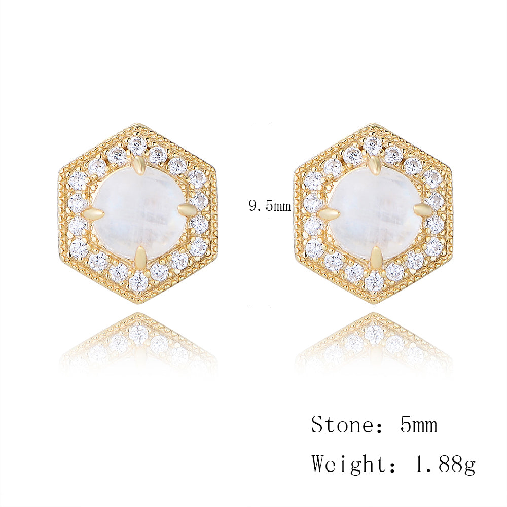 Dainty Hexagon Design Moonstone Cubic Zirconia Stud Earrings