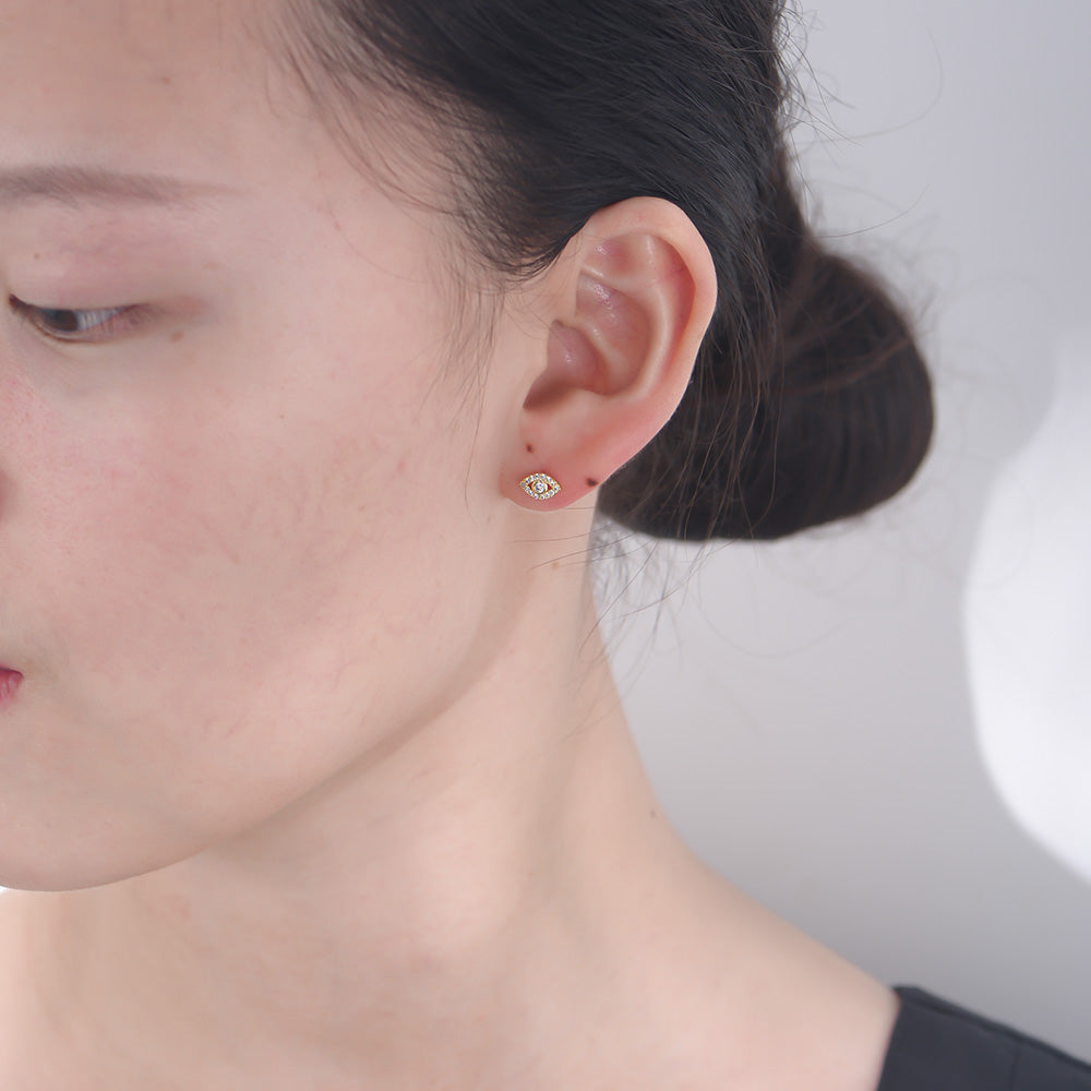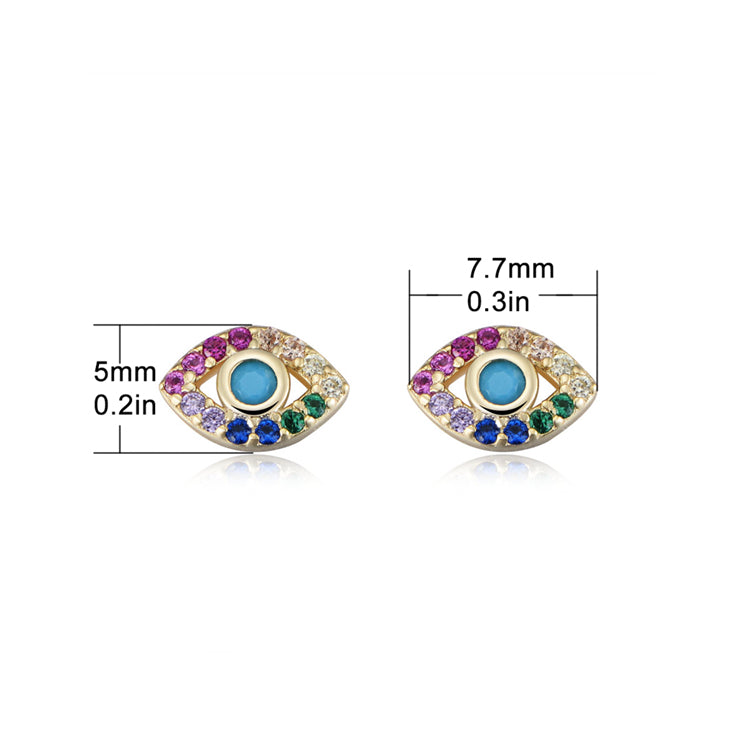 Dainty Colorful Zircon Evil Eye Studs Earrings