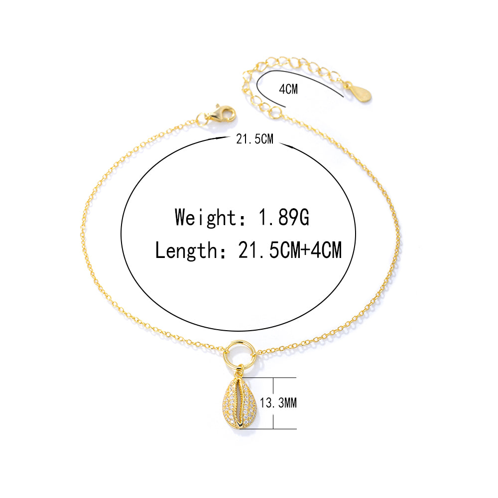 Fashion Pave Zircon Shell Charm Women Gold Plated Anklets