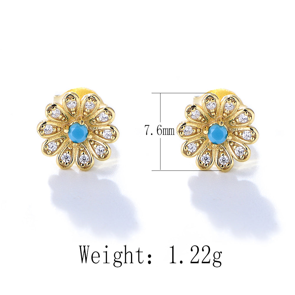 Fashion 925 Silver Turquoise Dainty Blooming Flower Stud Earring Jewelry