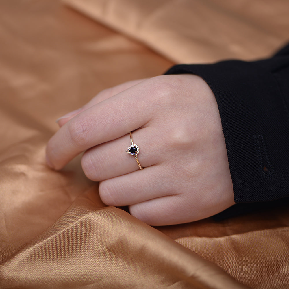 • Fashion Gold Plated Pear Cut Black Zircon Ring