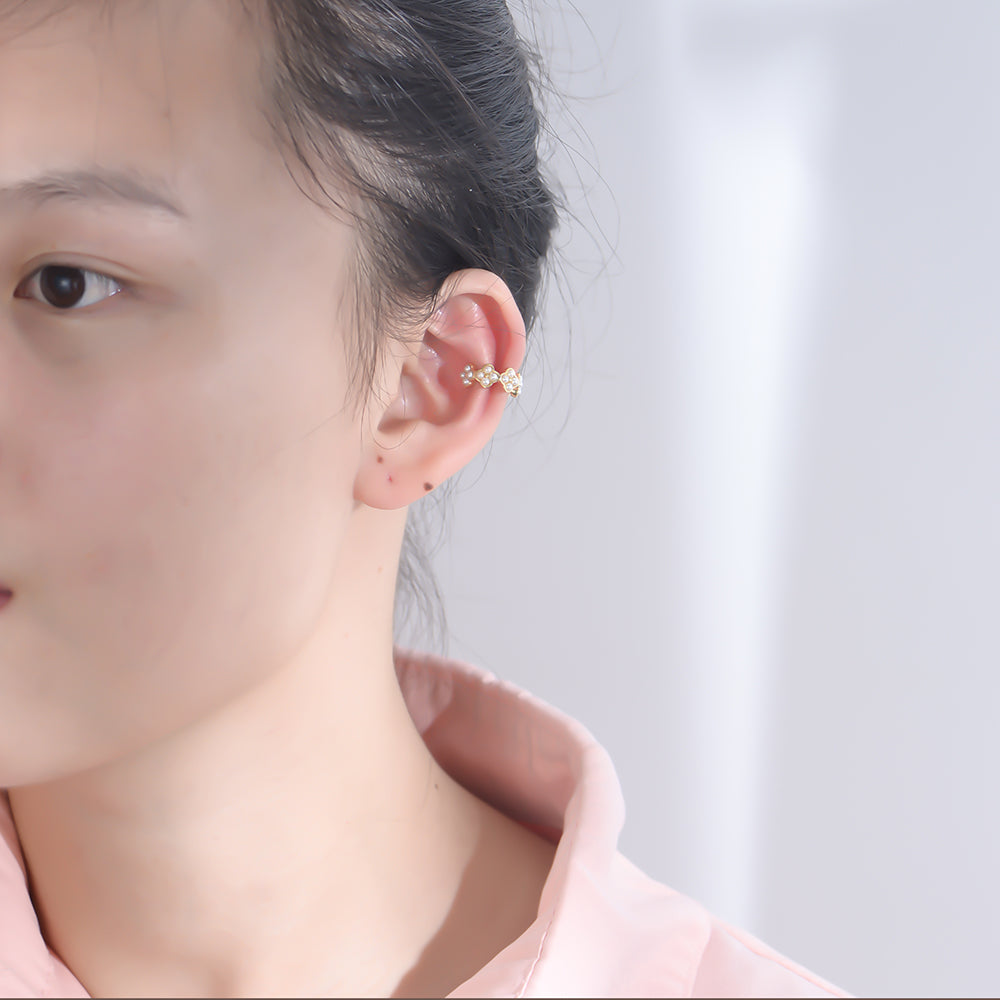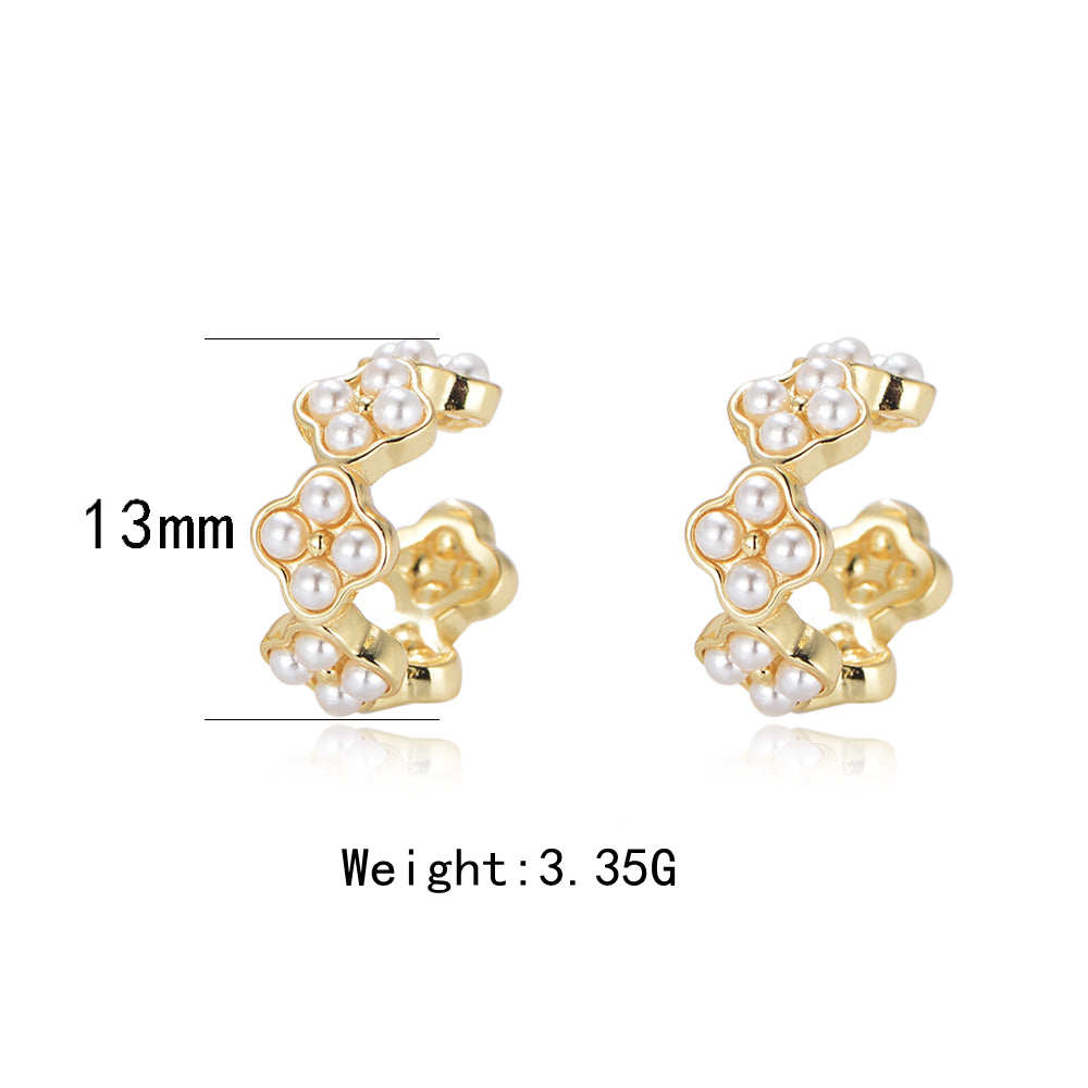 Fashion Gold Plated Pearl C Shape Cuff Earrings