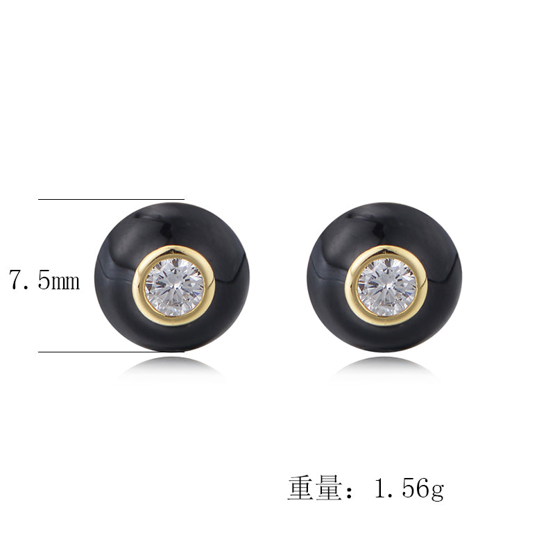 Fashion Design Zircon Enamel Hoop Black Oil Drop Dainty Stud Earrings