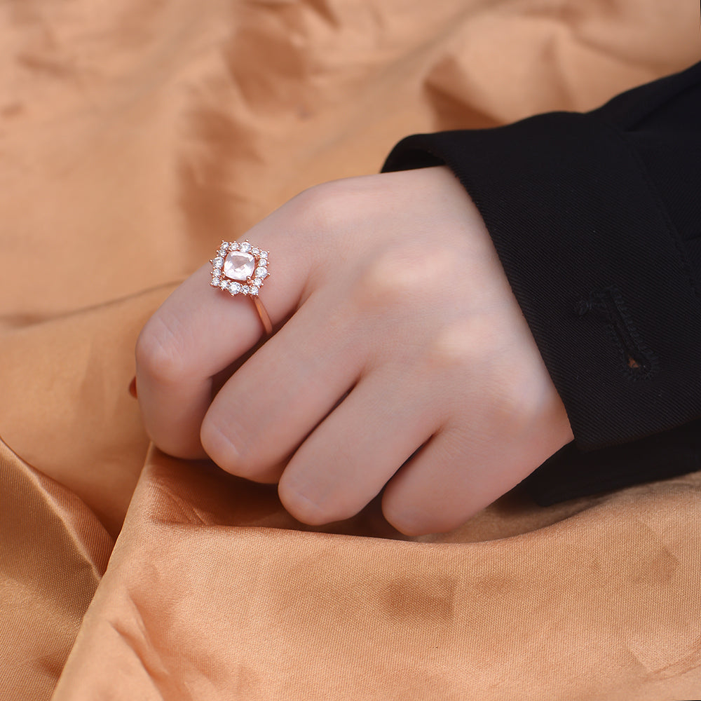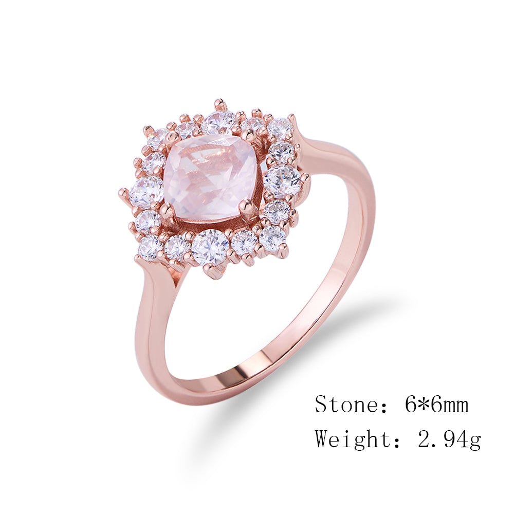 Fashion Engagement Wedding Natural Pink Crystal Gemstone Ring Jewelry
