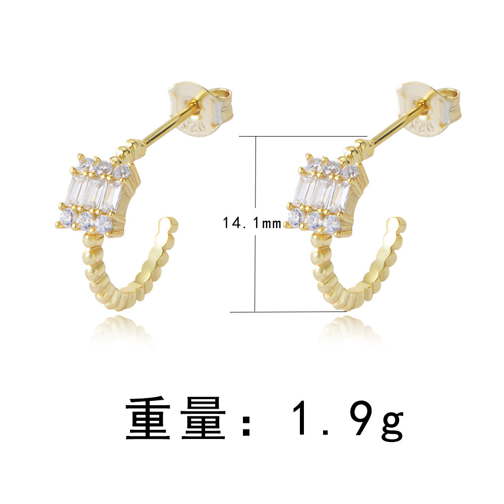 Fashion Jewelry Geometry Square Solitaire Diamond Zircon Earrings