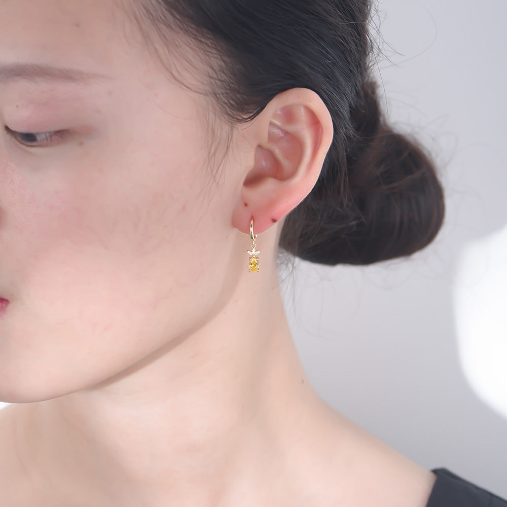 Fashion Jewelry Cute Fruit Pineapple Pear Cut Topaz CZ Dangle Huggie Earring