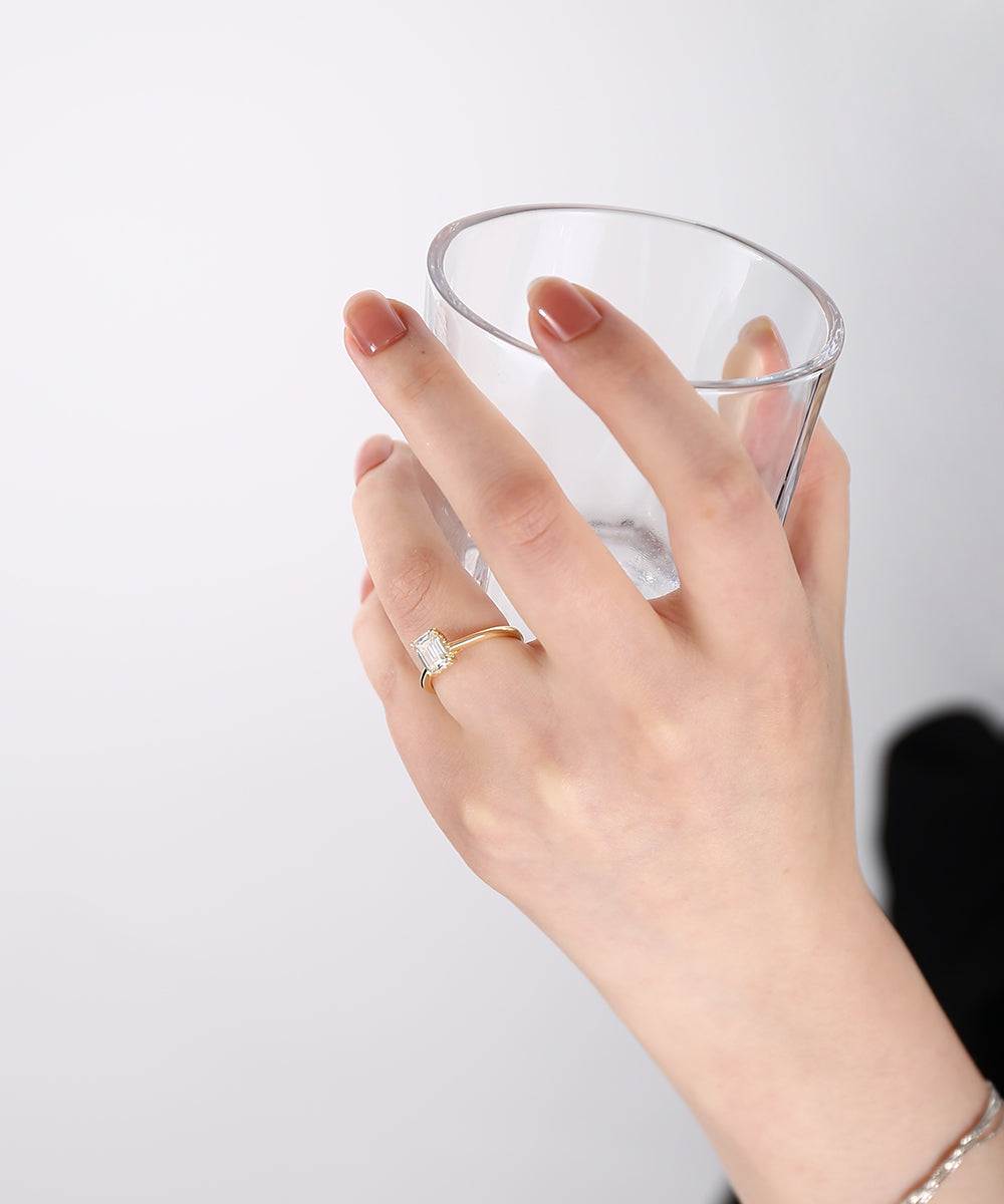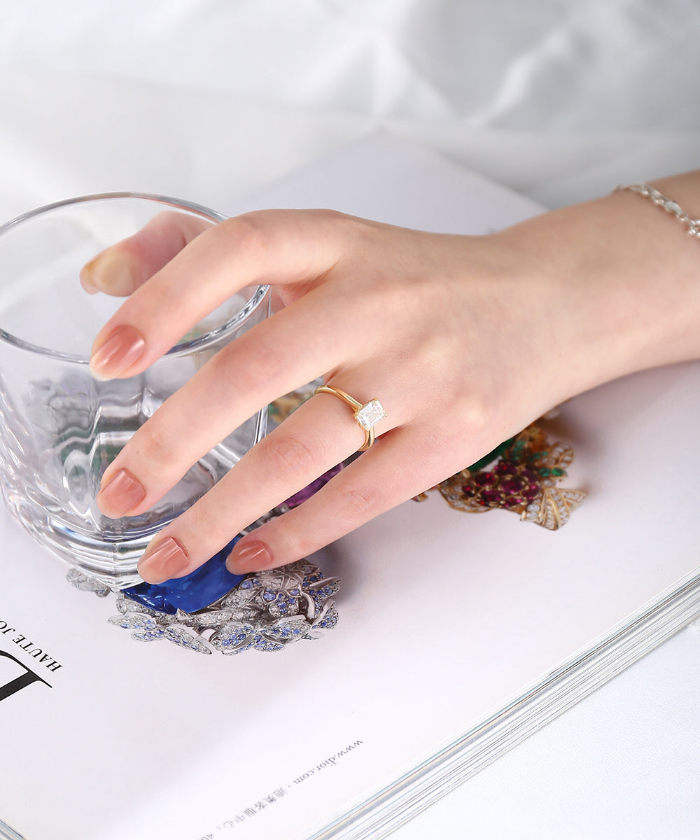 Fashion Jewelry Engagement Solitaire CZ Baguette Cut Couple Ring