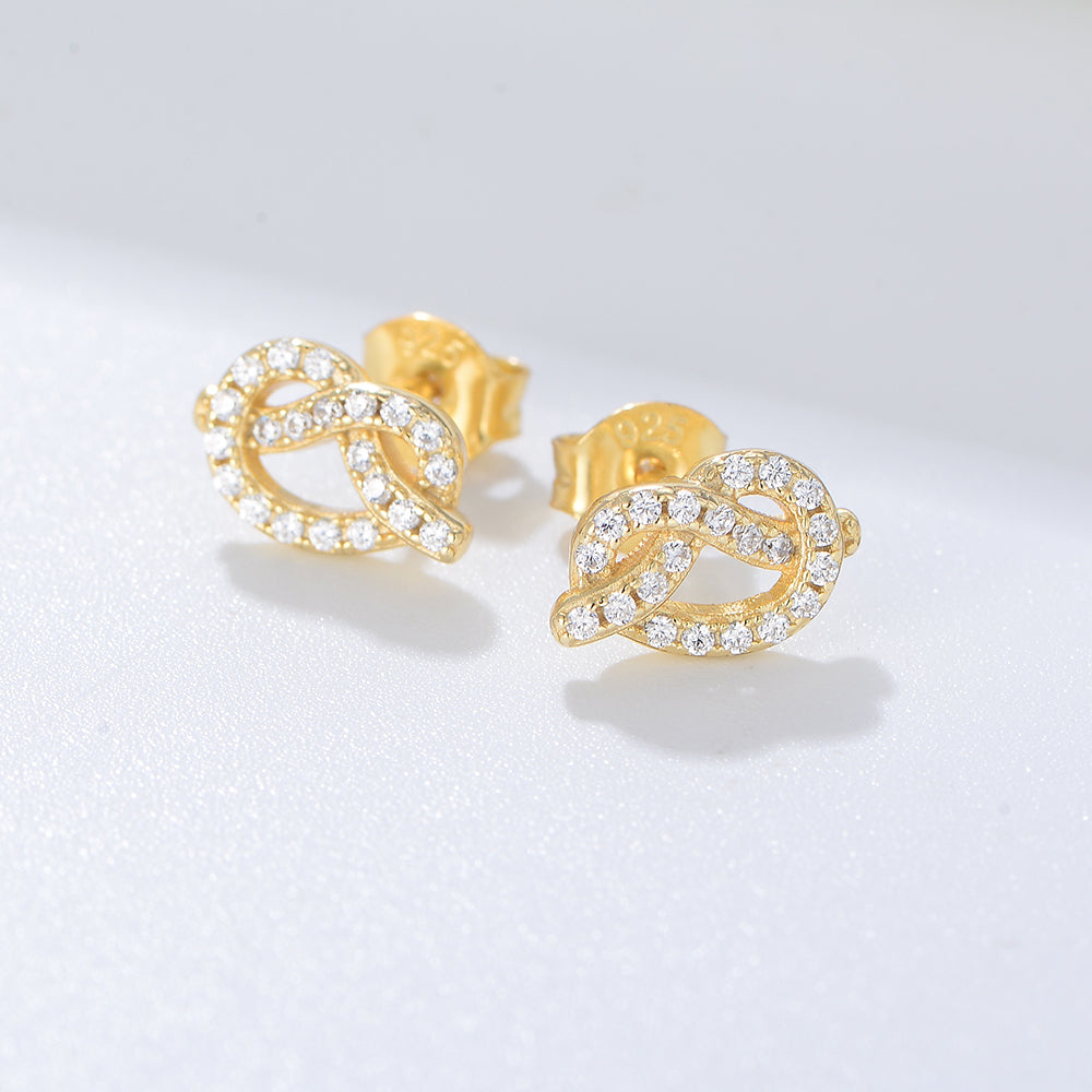 Fashion Jewelry Diamond Zircon Earrings Love Knot Charm Stud Earrings