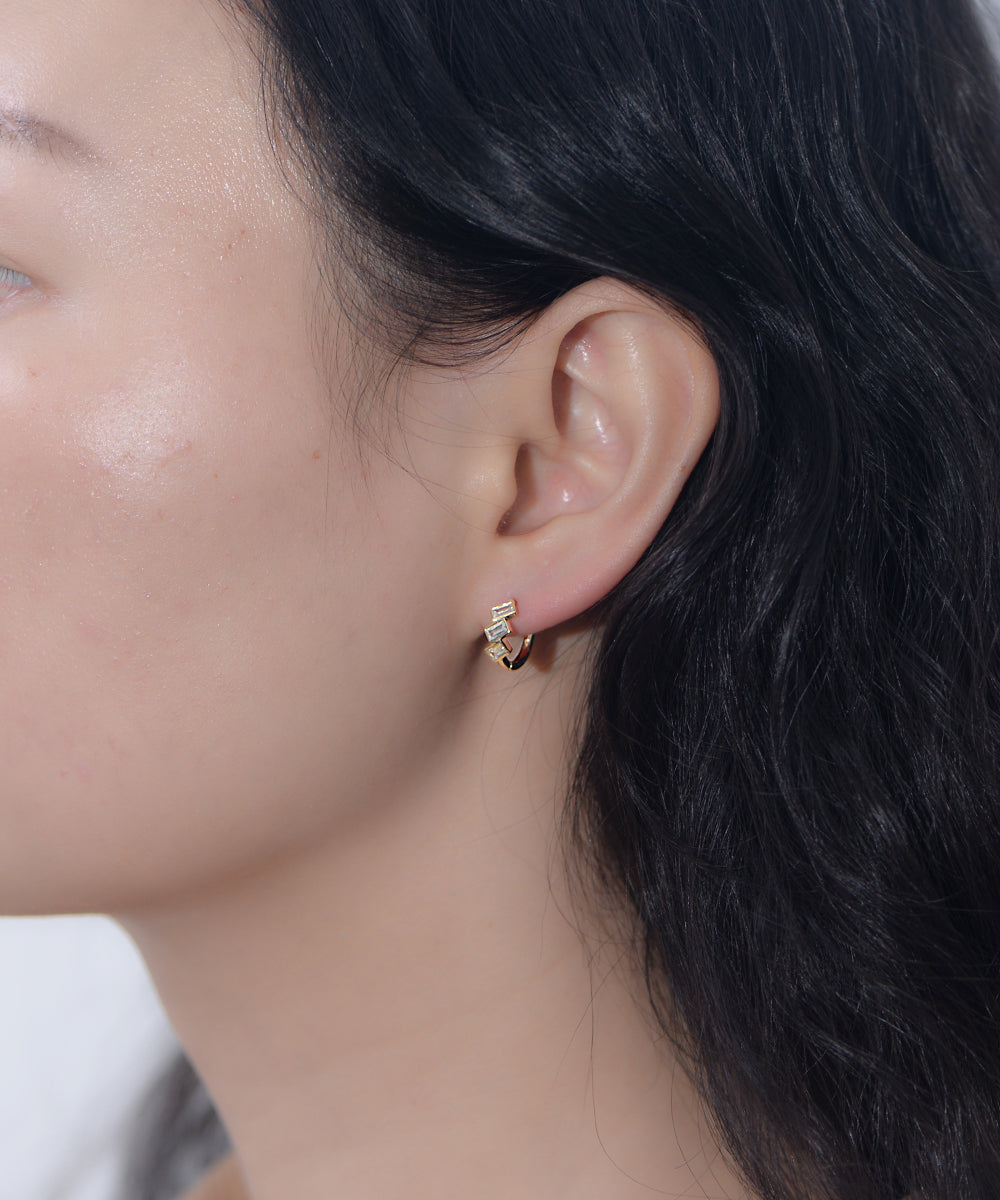 Fine Jewelry Rectangle Cubic Zircon Huggie Earrings