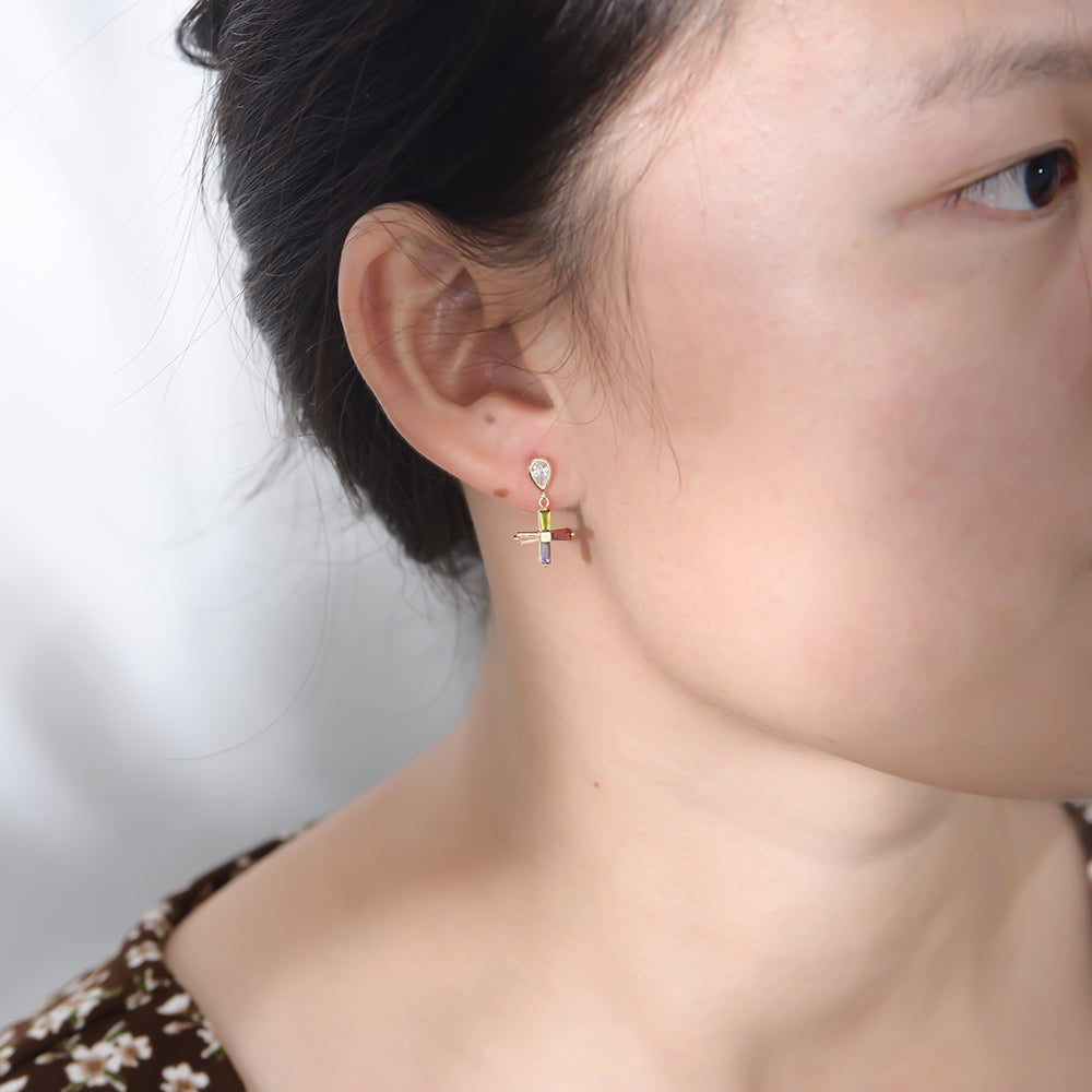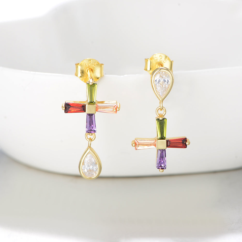Fine Jewelry  Colorful Zircon CZ Diamond Cross Dangle Stud Earrings