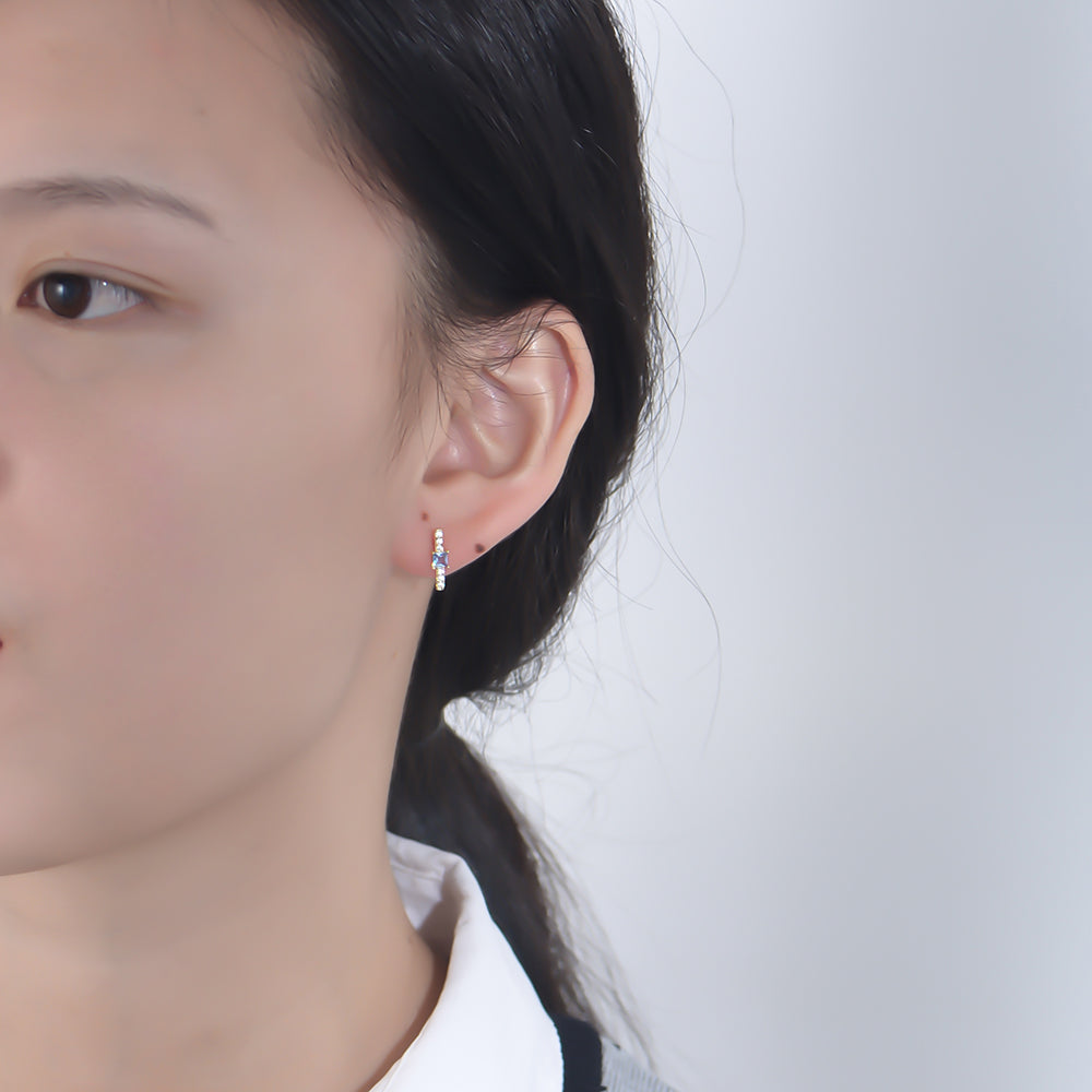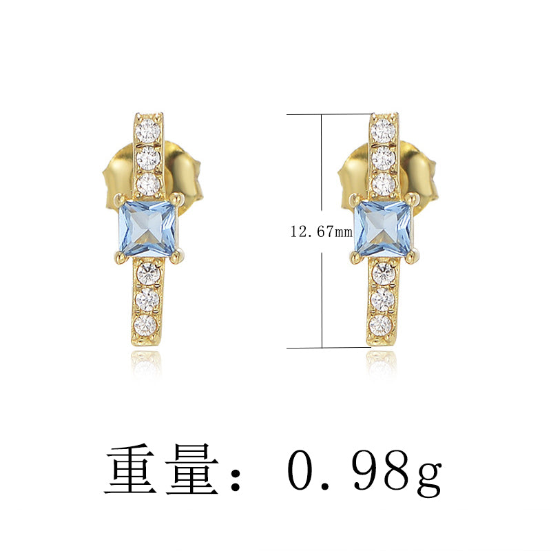 Minimalist Geometric Cubic Zircon Bar 925 Silver Stud Earrings