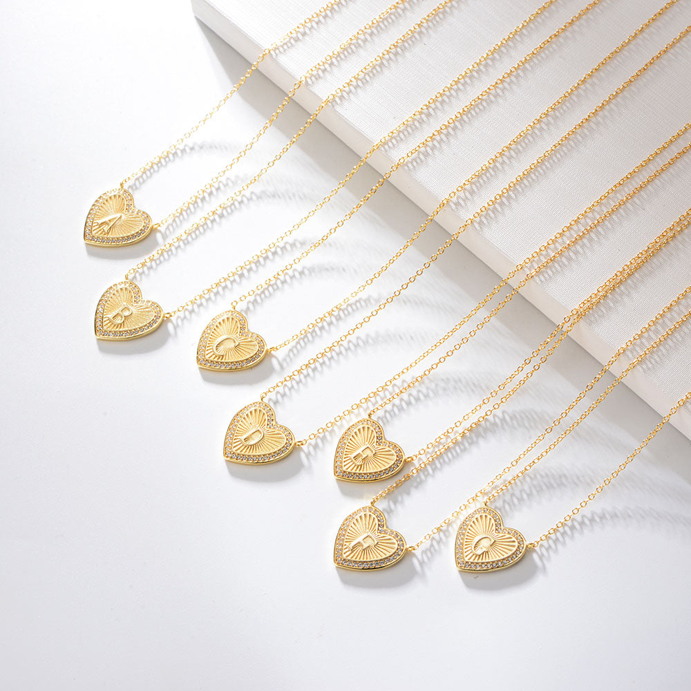 Heart Shape Zircon Pendant Necklace 26 English Letter Necklace