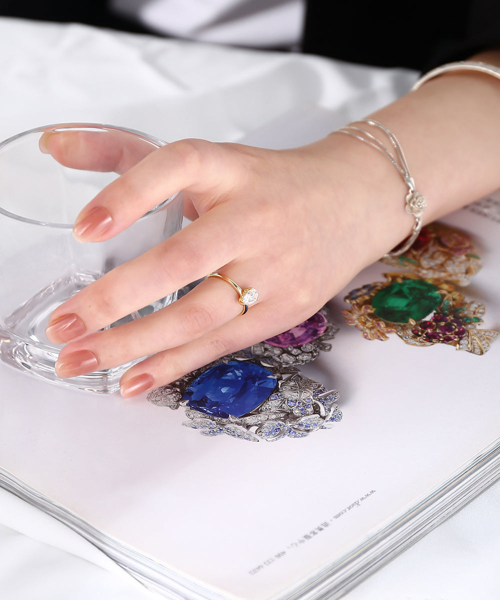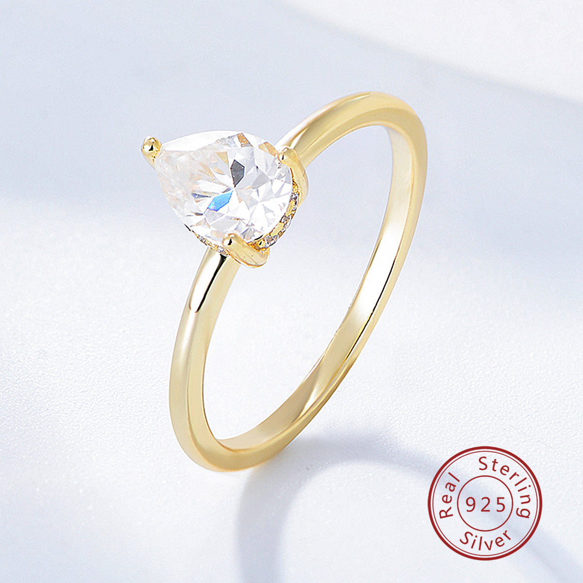 High Quality Women Bridal Jewelry Ring 925 Sterling Silver Pear Cut Zircon Diamond Ring