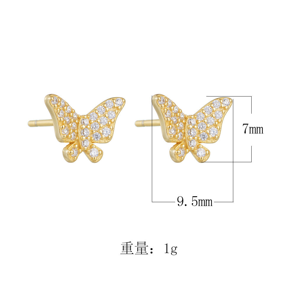 Minimalist Fashion Jewelry Pave CZ Butterfly Stud Earrings