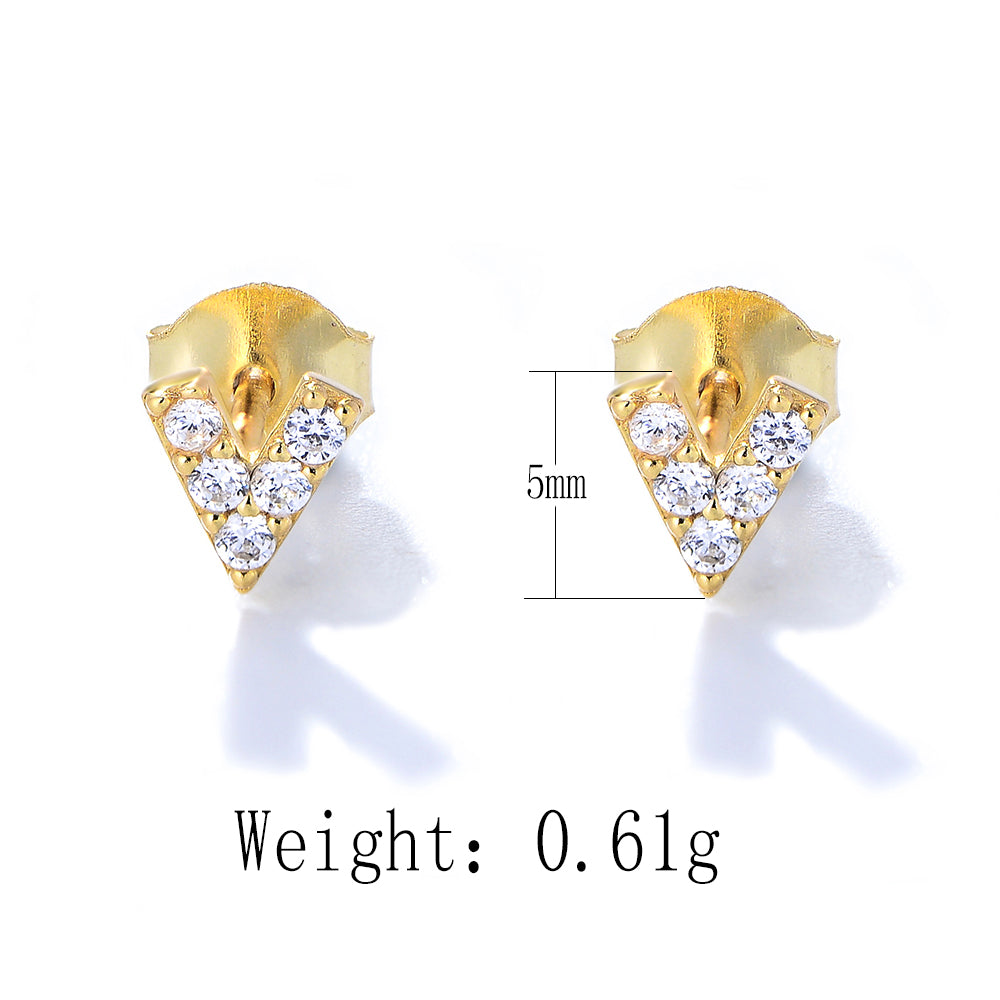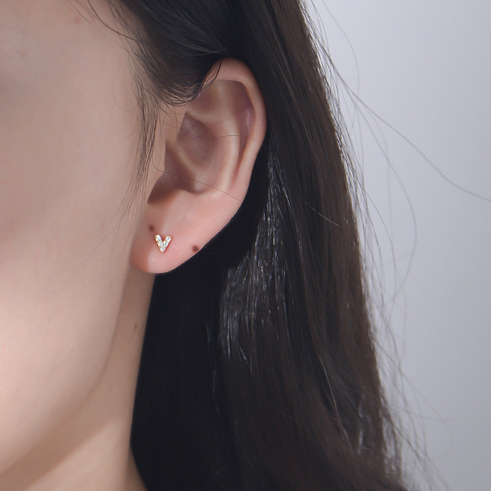 • Minimalist Fashion Jewelry CZ Letter V Stud Earrings
