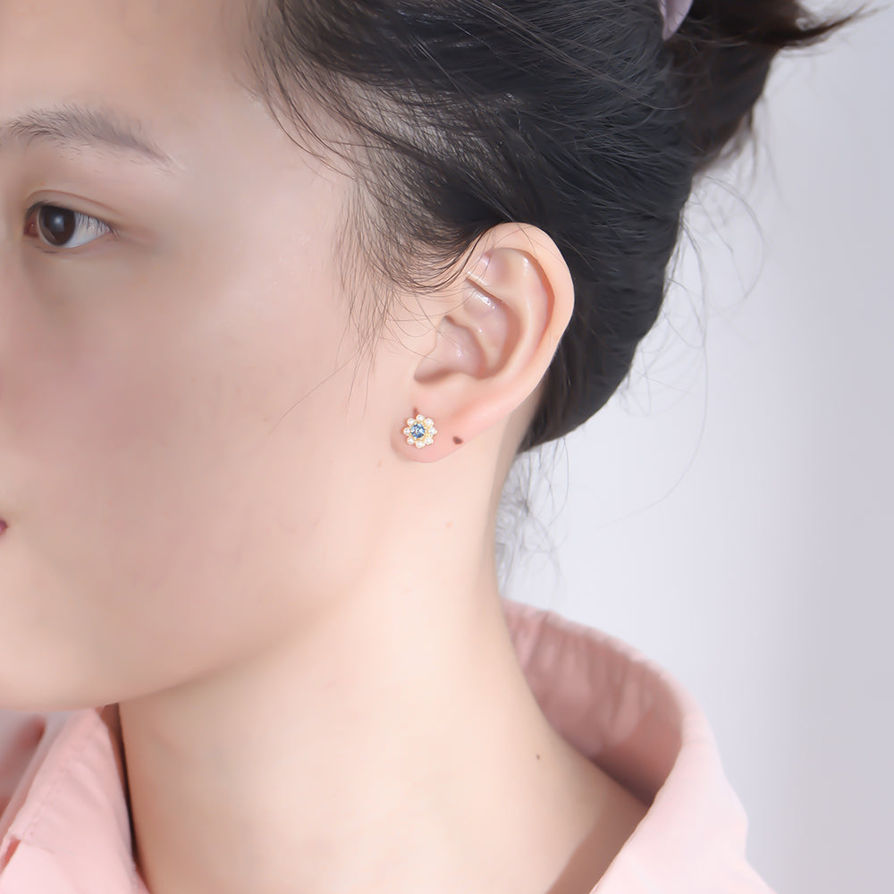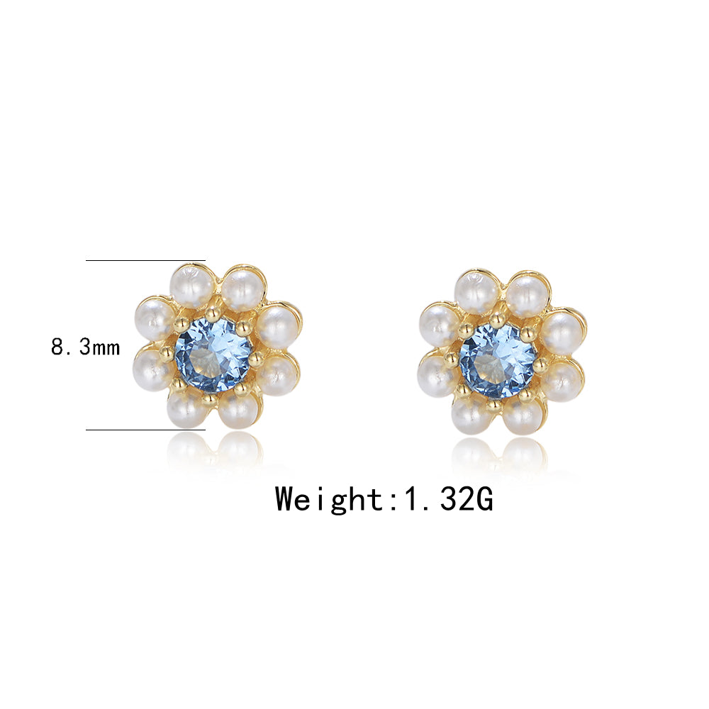 New Fashion Blue Zircon Pearl Flower Lovely Stud Earrings