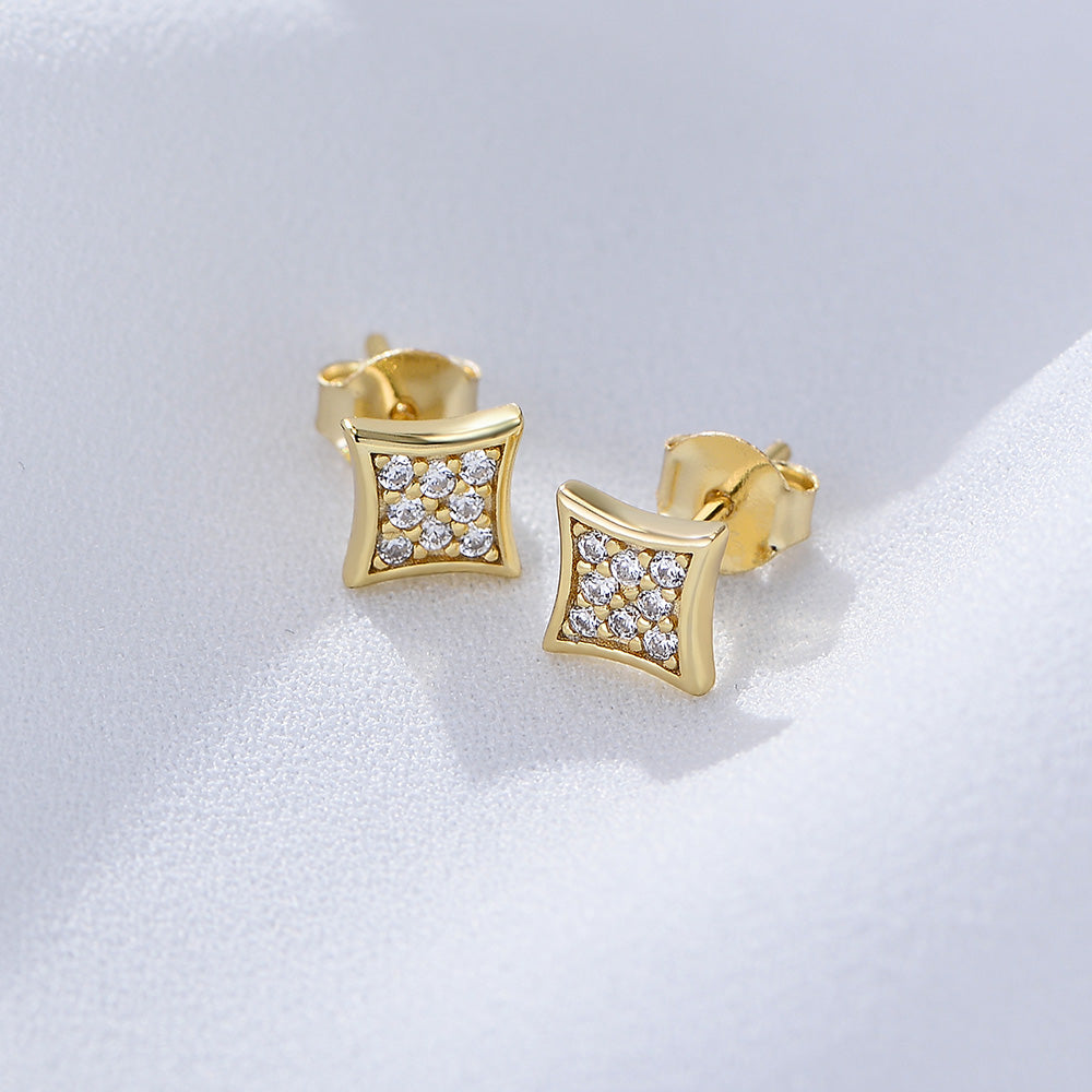 Fall in love with our New Popular Diamond Star Pave Zircon 925 Silver Stud Earring. The shining white Zircon stone is beautifully inlaid on a sterling silver rhombus shape, weighing only 1.08 g. Sparkle and shine with this elegant and lightweight design.
