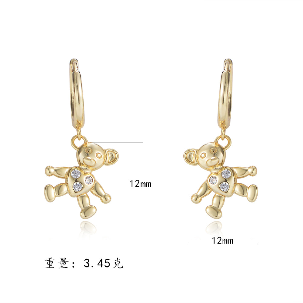 Personalize Zirconia Lovely Teddy Bear Charm Hoop Earrings