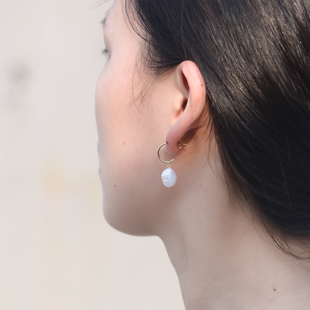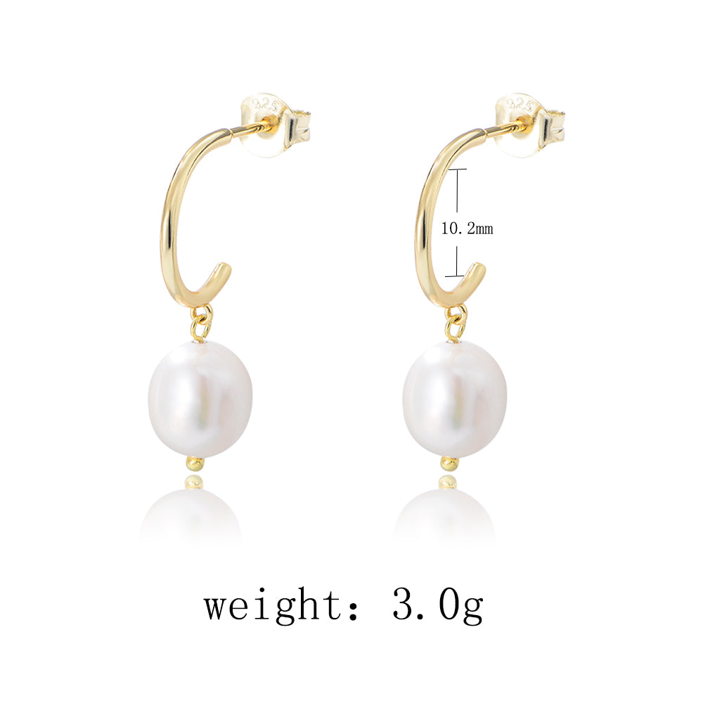 Simple 925 Silver 14K Gold Plated Pearl Earrings