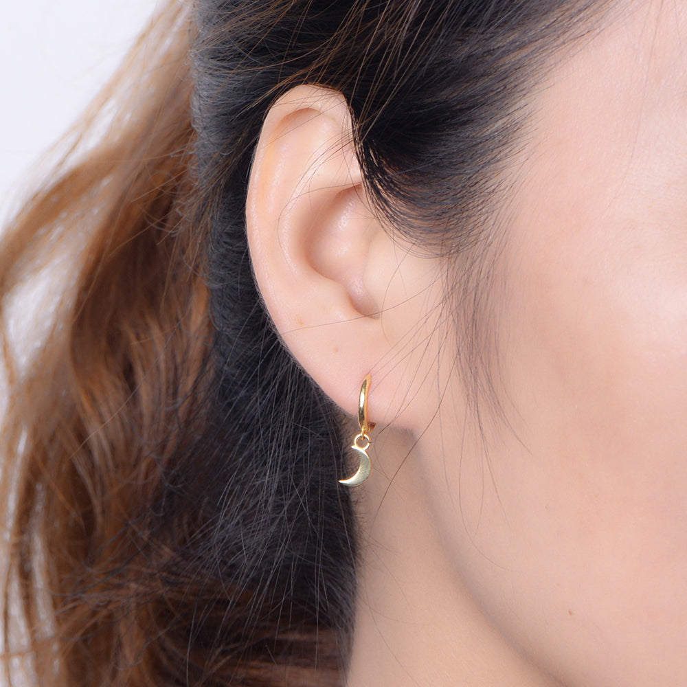 Simple Asymmetric Dangle Star Moon Mini Huggie Hoop Charm Earrings Simple Asymmetric Dangle Star Moon Mini Huggie Hoop Charm Earrings