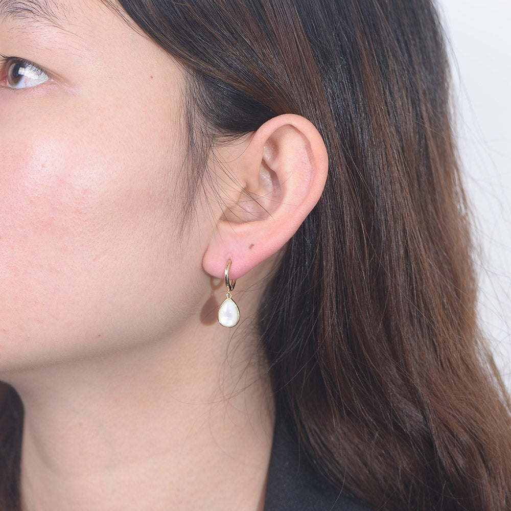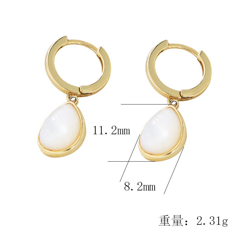 • Simple Fashion Waterdrop Pearl Shell Dangle Hoop Huggies Earring Jewelry
