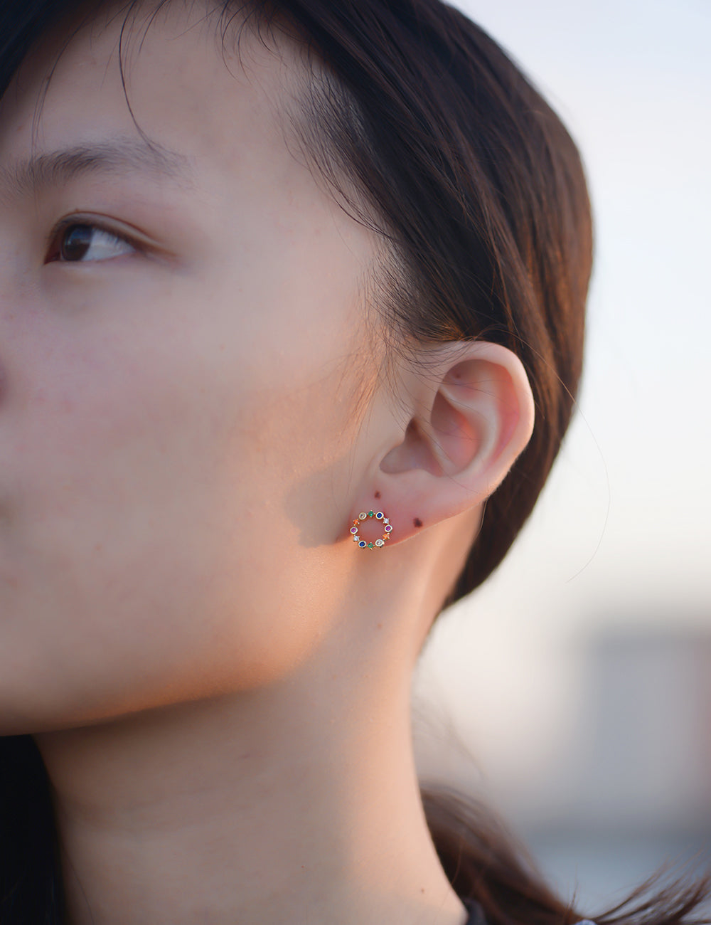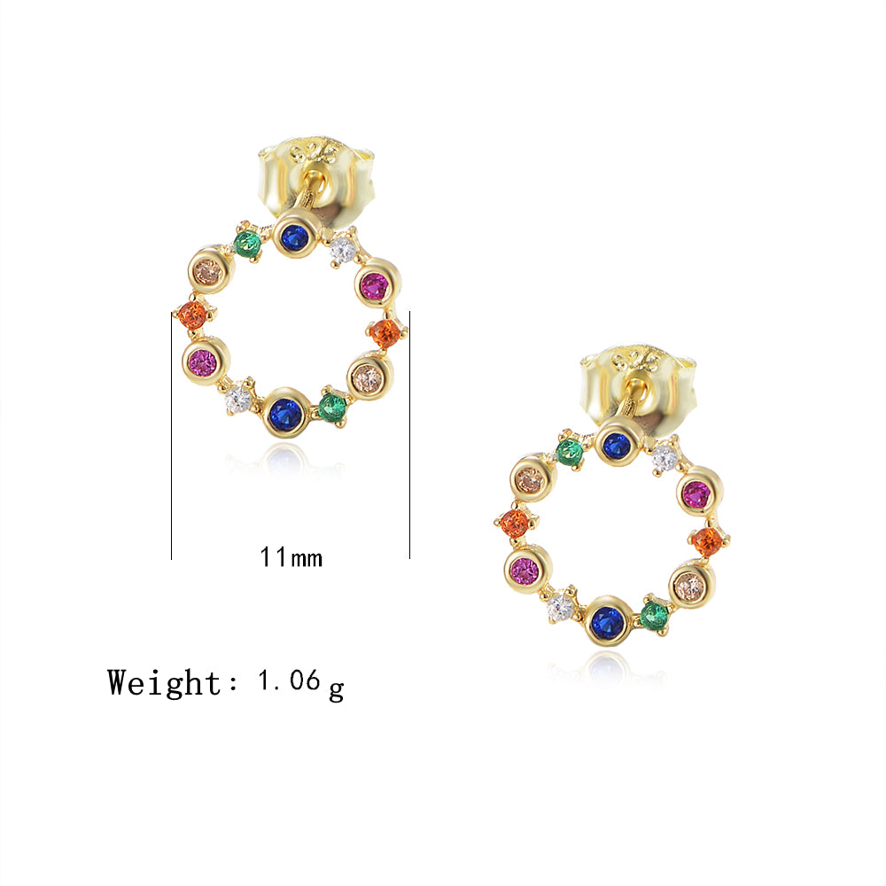 Simple Luxury Round Colorful Diamond CZ Sterling Silver Stud Earrings