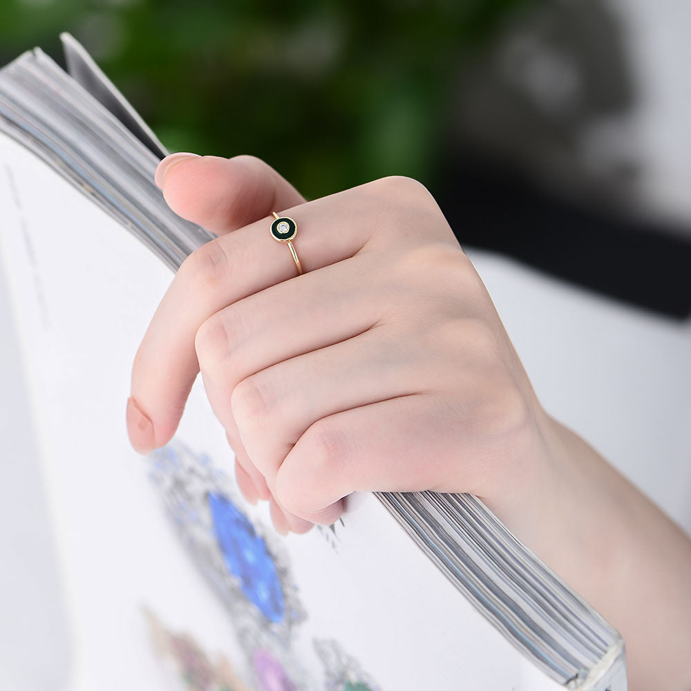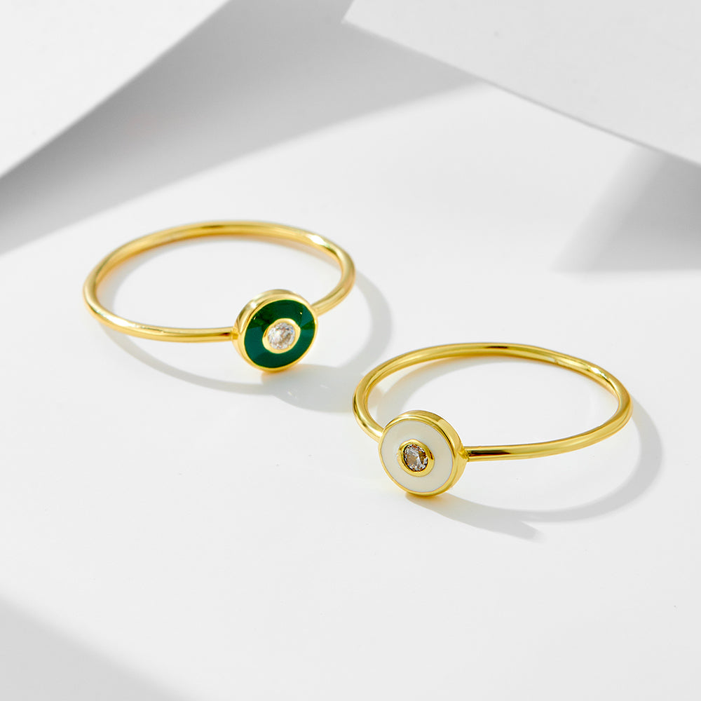 Vintage Round Cubic Zirconia Enamel Jewelry Gold Plated Rings